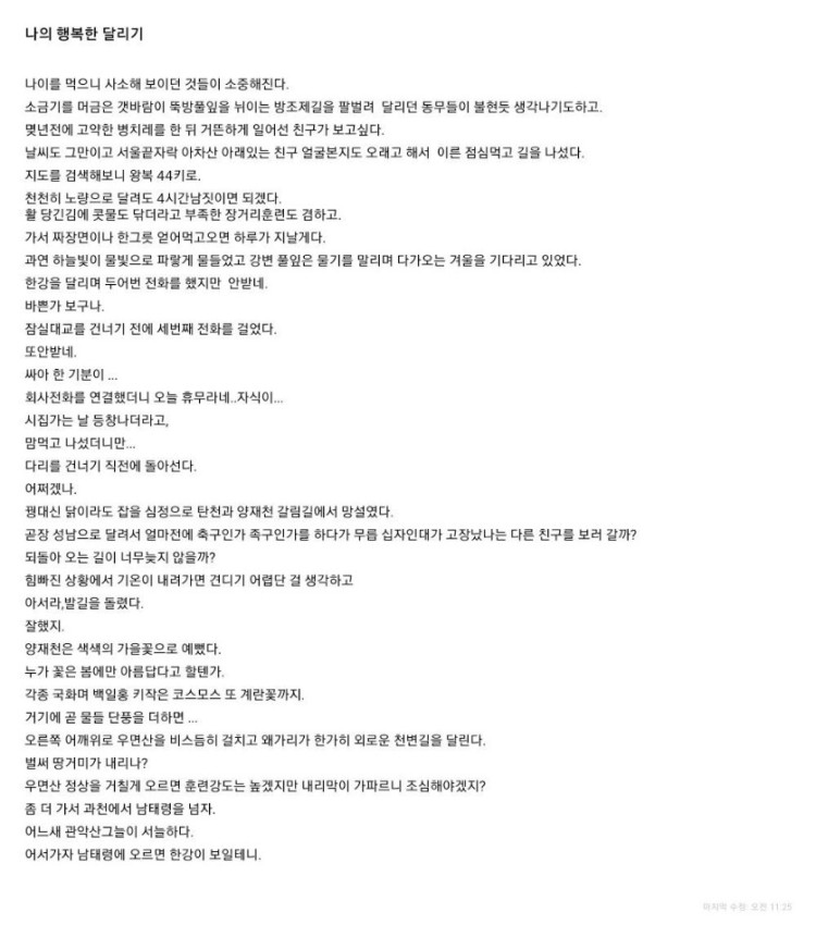 1시간40분 | 나의 행복한 달리기 페이지 정보 작성자 이창규 작성일19-10-19 16:35 조회602회 댓글0건 관련링크 다음글 수정 삭제 검색 목록 답변 글쓰기 본문 1 추천 0 댓글목록 등록된 댓글이 없습니다. 다음글 수정 삭제 검색 목록 답변 글쓰기