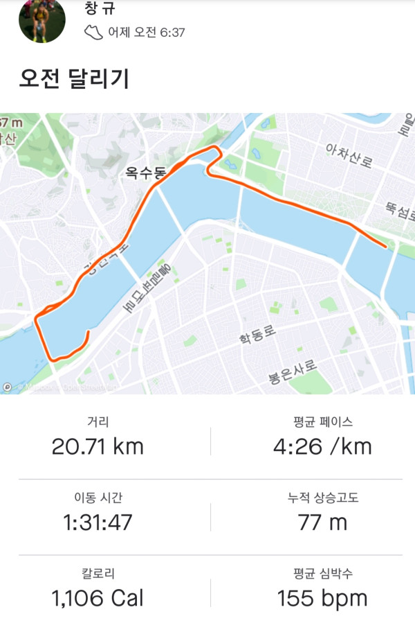 동네 마실가듯 풀코스 거리를 훈련삼아 뛰기를 연풀.