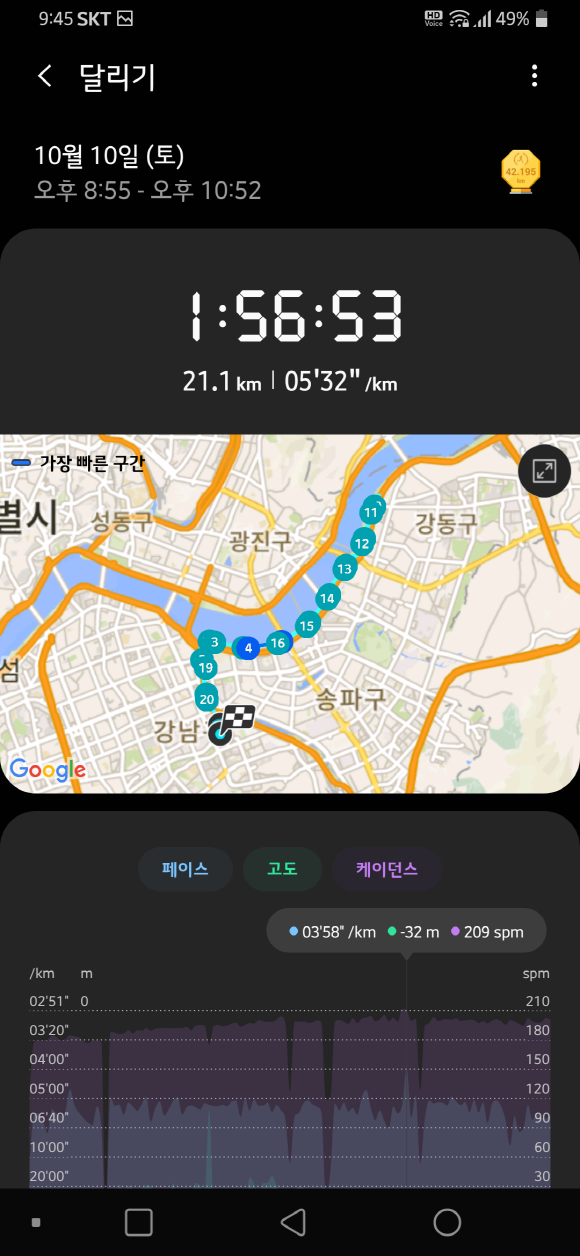 42.195km 달리기 완료 페이지 정보 작성자 이상민 작성일20-10-22 10:09 조회641회 댓글0건 관련링크 이전글 다음글 목록 답변 글쓰기 본문 그동안의 훈련부족을 생각하면 못하는게 맞는데.. 완주 기념품에 눈이 멀어 무리했습니다. 어쨌건 완료! 댓글목록 등록된 댓글이 없습니다. 이전글 다음글 목록 답변 글쓰기