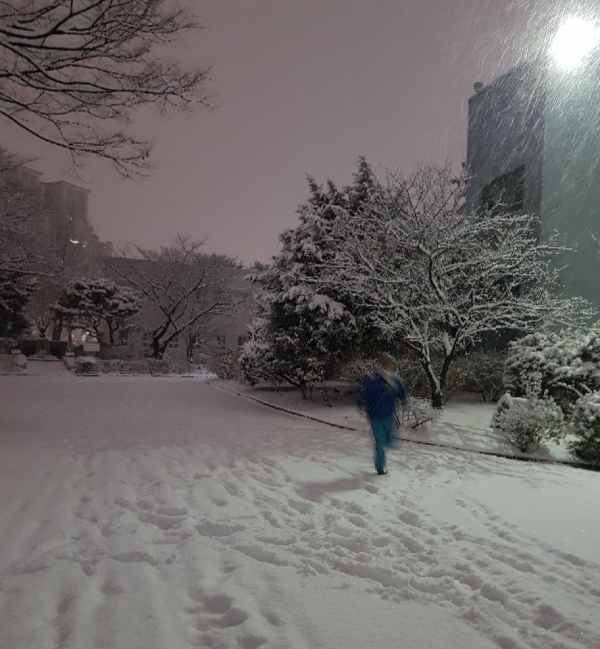 찬바람이 휘몰아치는가 싶더니 성기던 눈발이 굵어지고 이내 푸슬푸슬한 함박눈으로.