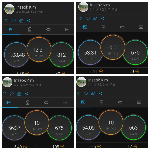 3월 3일 12.2킬로 총 4번에 42.2킬로 완료