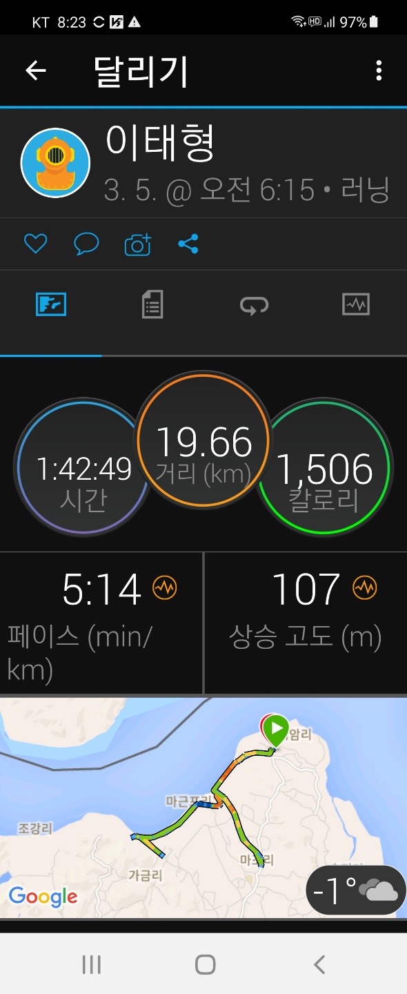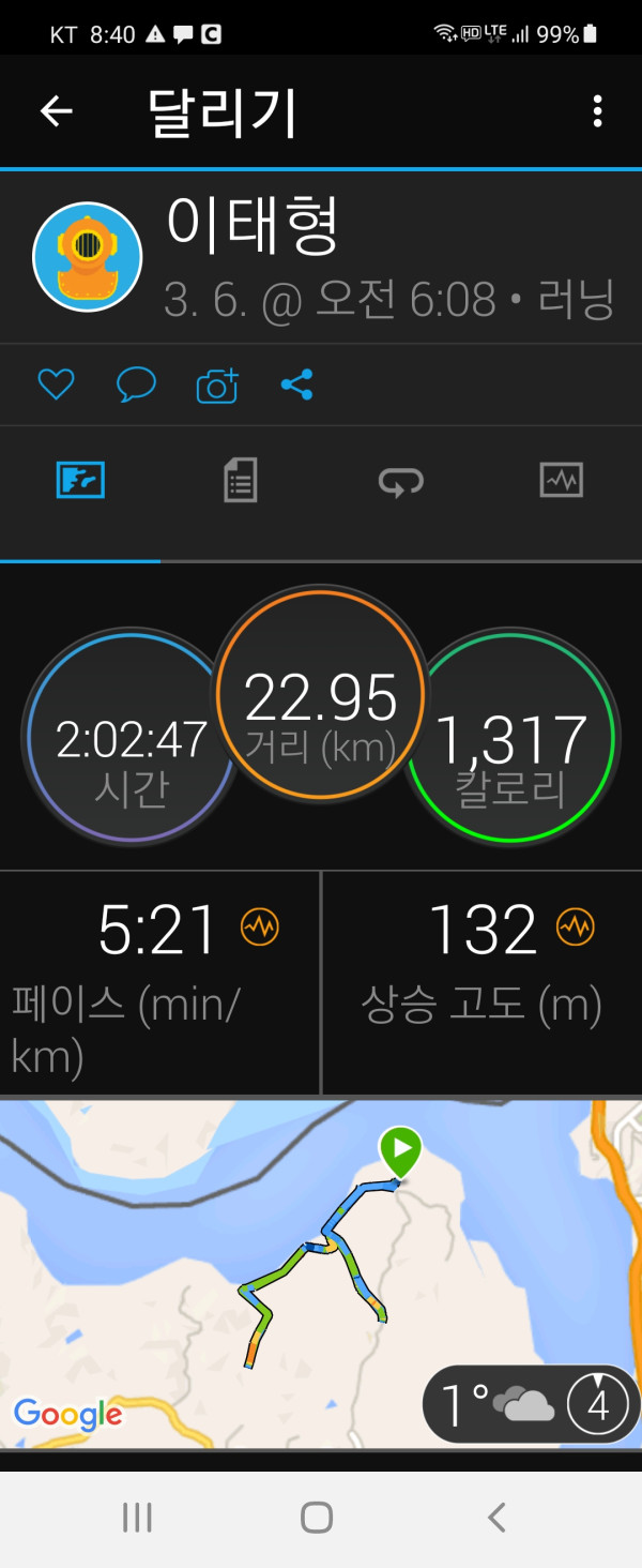시간은3:45분 달렸습니다.