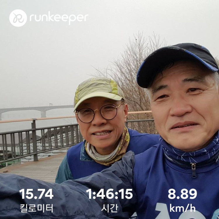 그러나 홍승철님과 김칠영님은 하프를 1시간 59분 30초로 완주하였네요..